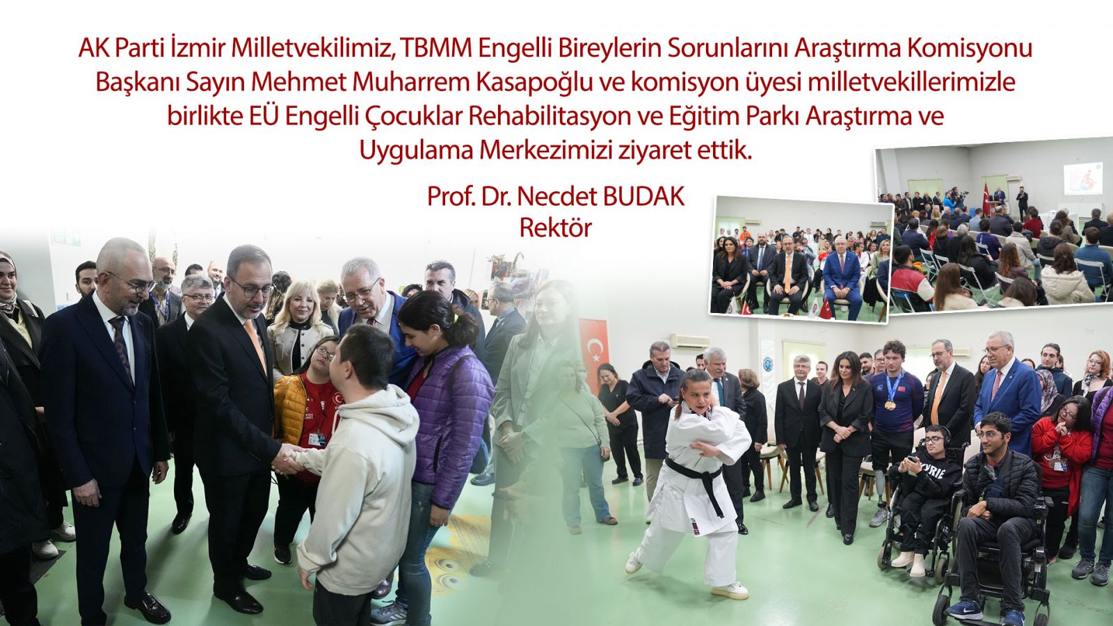 01 Aralık 2025 tarihinde saat 09.45’te Gençlik ve Spor Bakanımız ve TBMM Engelli Bireylerin Sorunlarını Araştırma Komisyonu Başkanı Dr. Mehmet Muharrem Kasapoğlu, Engelli Çocuklar Rehabilitasyon ve Eğitim Parkı Araştırma ve Uygulama Merkezini ziyaret etti. Gerçekleşen bu ziyarete engelli öğrencilerimiz de katılım sağladı.